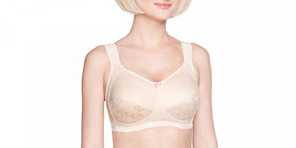 Бюстгальтер ортопедический из трикотажного полотна и кружева. Обхват регулируется многоуровневой застёжкой сзади. Специальный кармашек для протеза находится в обеих чашках.